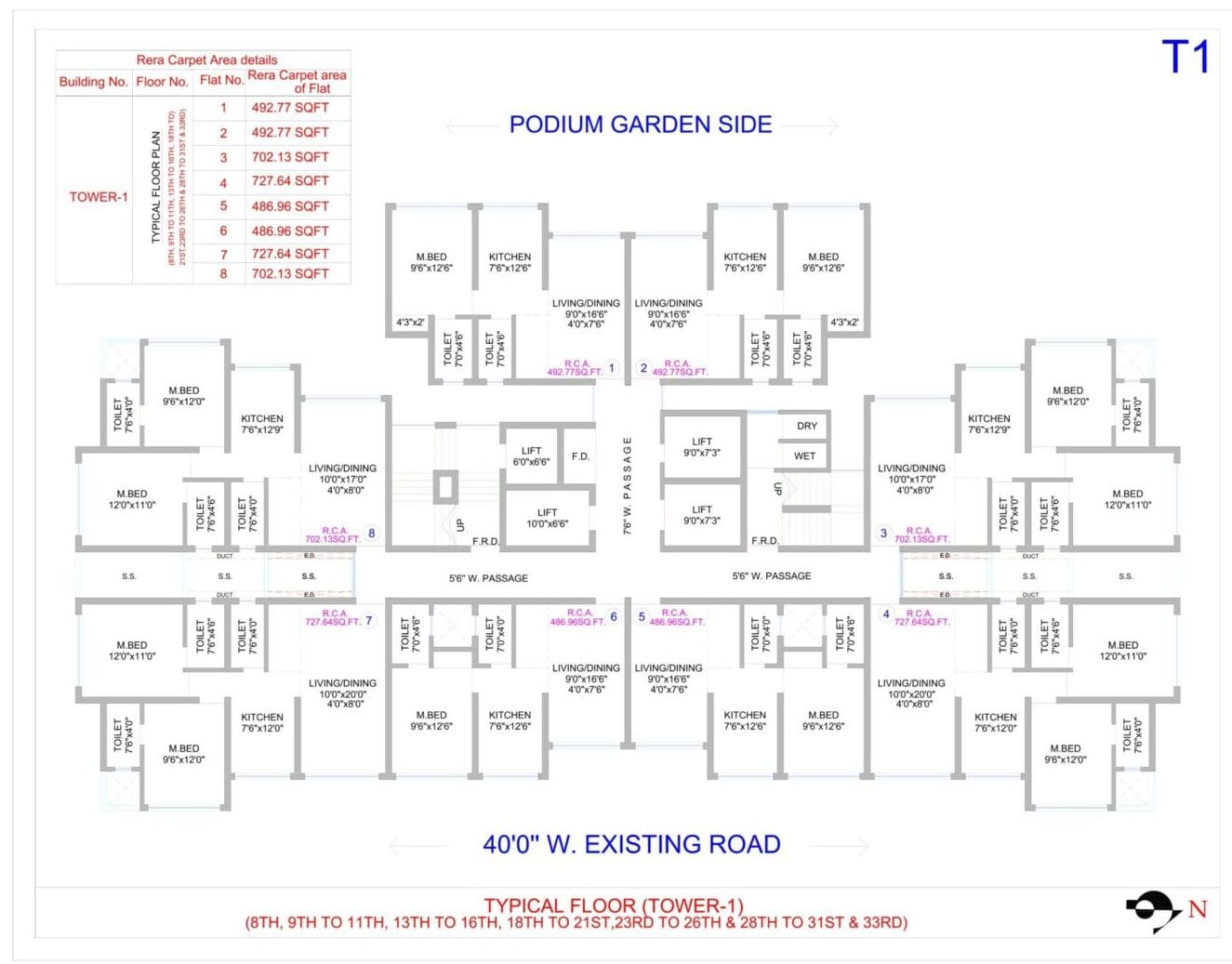 - 1 BHK: 487–493 sq. ft. (carpet area), starting at ₹88 Lakhs (lower floors, prices subject to change). Includes 1 car + 1 bike parking.