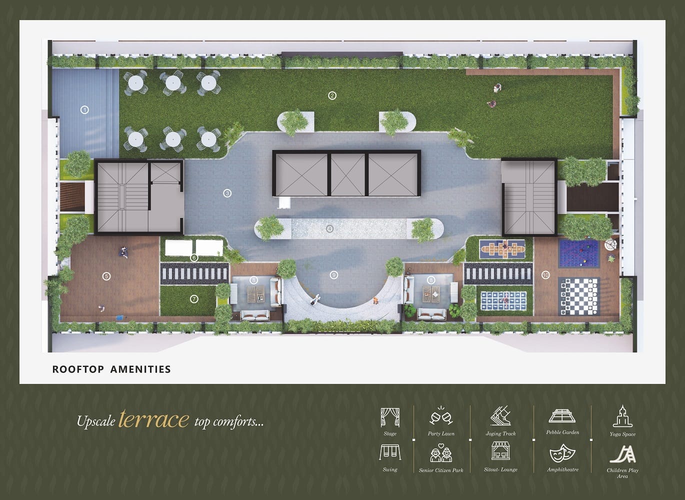 • Rooftop Amenities: Jogging track, amphitheatre, and open lounges for social gatherings.