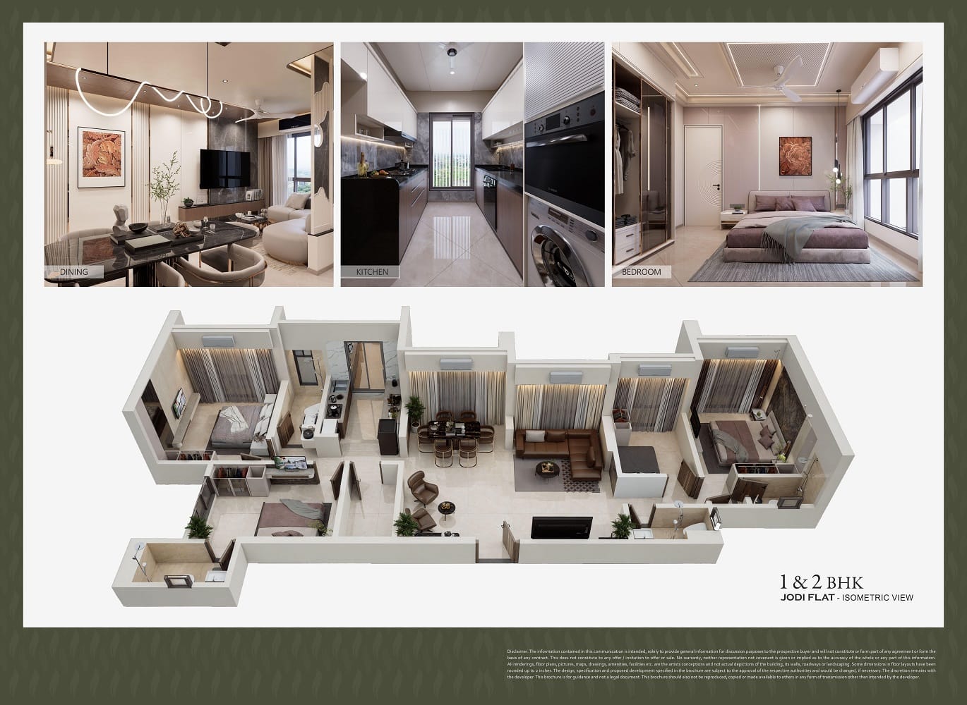 • 1+2 Jodi Option: Up to 1111 sq ft – Ideal for joint families or those needing extra space for home offices.