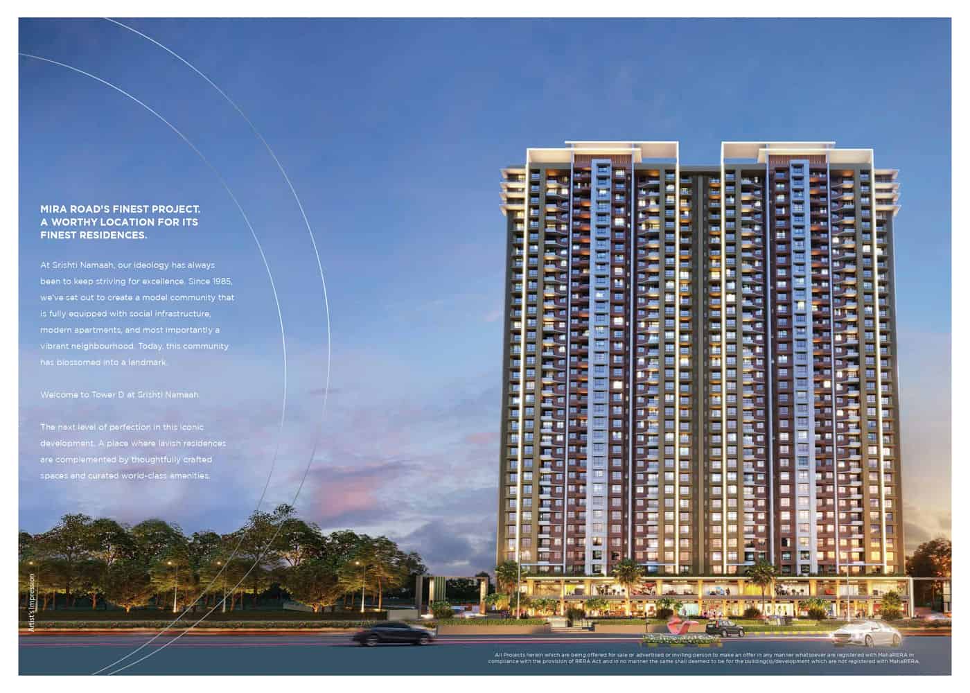 Kalpataru Srishti Namaah stands out for its blend of luxury, connectivity, and community-focused living. The project is developed by Kalpataru, a trusted name in Indian real estate with over five decades of experience. Their commitment to quality is evident in the meticulous design and premium finishes of each apartment. The strategic location in Mira Road, coupled with excellent connectivity, makes it an ideal choice for homebuyers seeking a modern yet serene lifestyle.