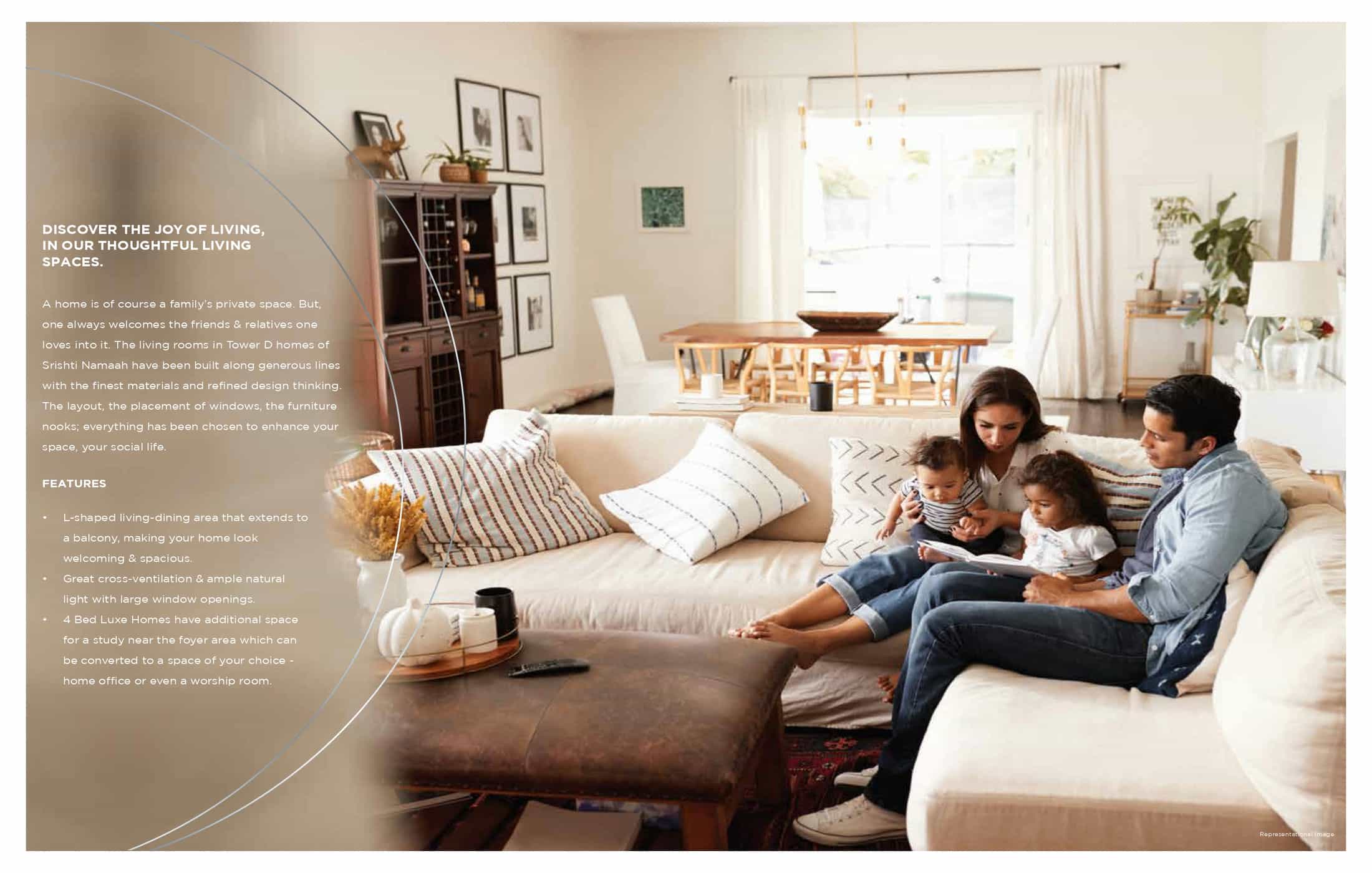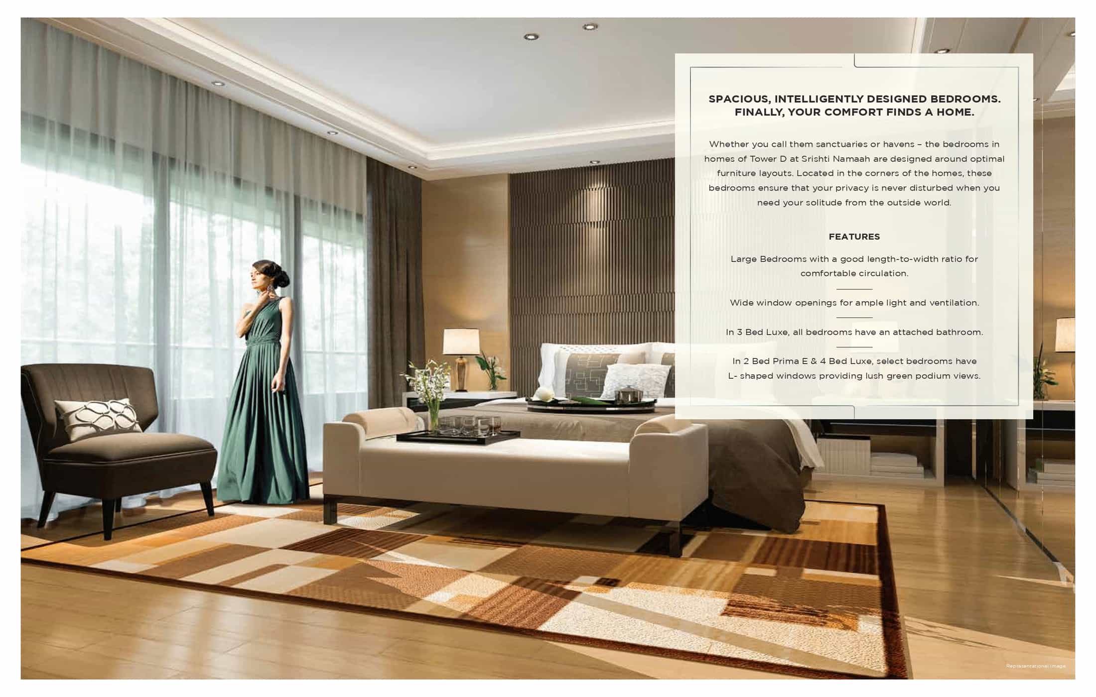 The apartments in Tower D are designed for comfort and elegance. Spacious living and dining areas seamlessly connect to private balconies, offering a bright and airy ambience. Large windows maximise natural light and ventilation, creating a refreshing living environment. The 4-bedroom units include a versatile study, perfect for a home office, prayer room, or hobby space. Every detail in Kalpataru Srishti Namaah reflects quality and sophistication, making it a perfect choice for modern families.