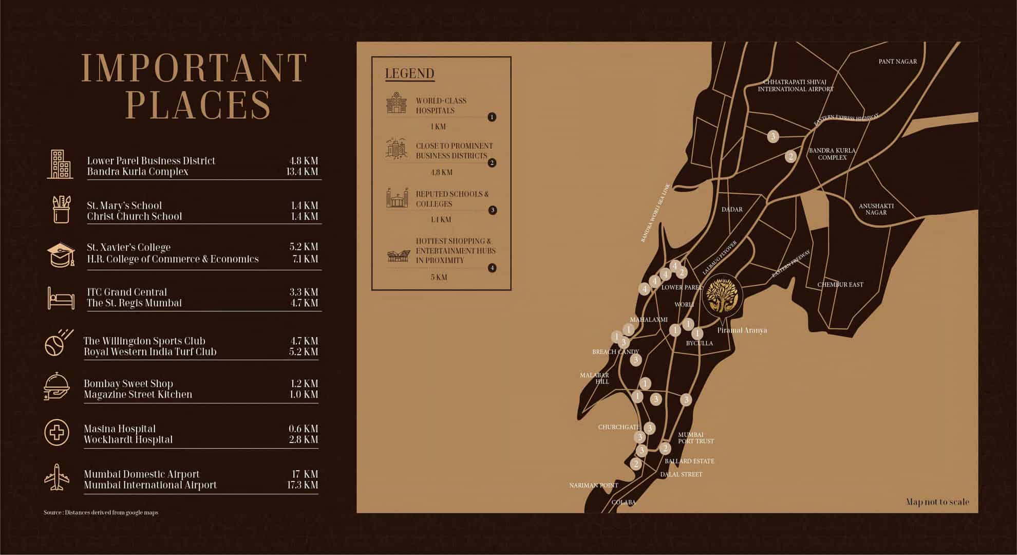 - Business Districts: Lower Parel (4.8 km), Bandra Kurla Complex (13.4 km)