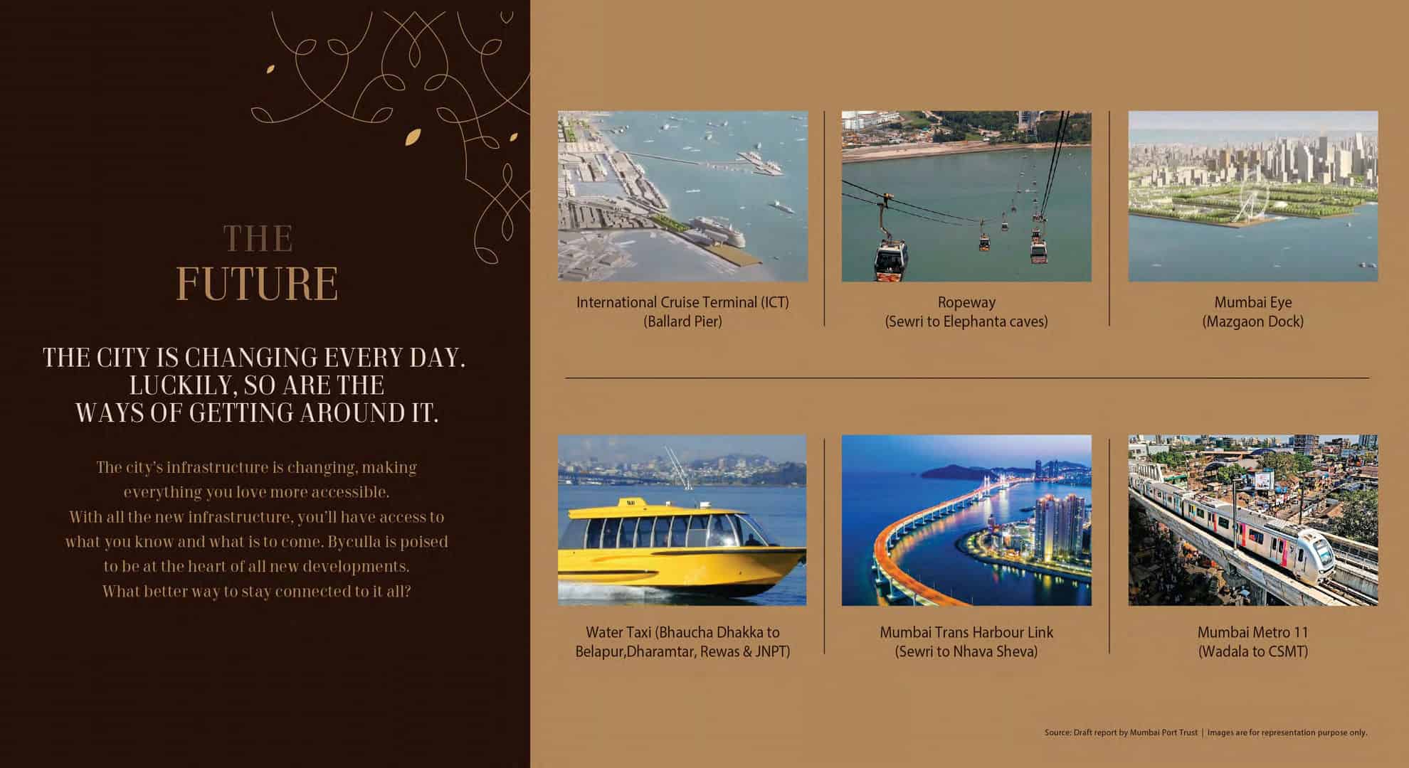 Upcoming infrastructure like the International Cruise Terminal, Water Taxi services, and Metro Line 11 (Wadala to CSMT) further enhance accessibility, positioning Piramal Aranya as a connectivity hub.