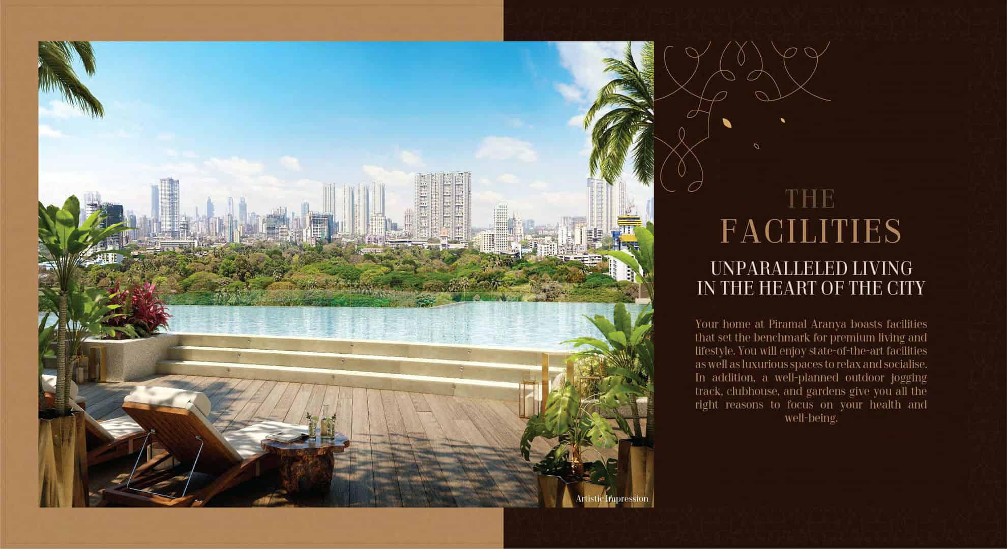 Piramal Aranya redefines luxury with over 1 lakh sq ft. of recreational spaces, including a clubhouse, infinity pool, spa, creche, and 40+ world-class amenities. Residents enjoy jogging tracks, landscaped gardens, and wellness-focused facilities that prioritise health and community. Each residence is a masterpiece, with dual-aspect views of Rani Baug and the Eastern Harbour, flooded with natural light through thoughtfully designed windows. Interiors feature premium materials, modular kitchens, and smart home integrations, crafting a bespoke living experience for discerning homeowners.