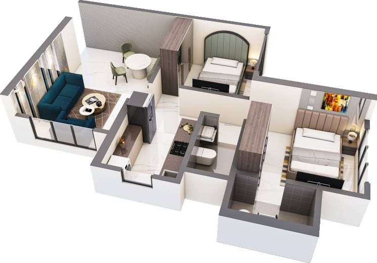 - 2 BHK (569-600 sq ft carpet): Priced between ₹94.5 Lakhs and ₹99.7 Lakhs, these spacious homes are ideal for growing families looking for comfort and value.